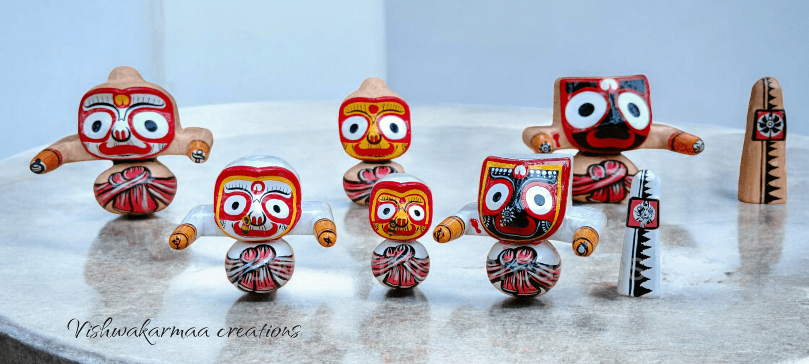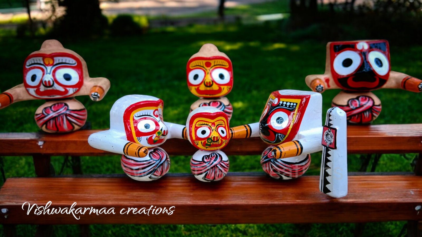 Handcrafted Wooden Jagannath and Siblings Murti for Home Pujas