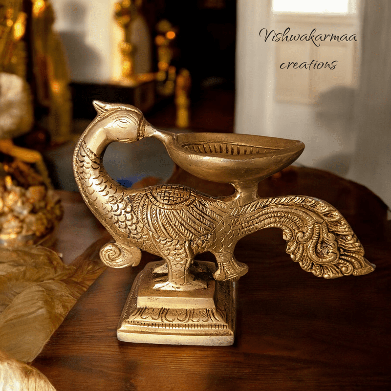 Peacock Design Diya – Elegant Brass Lamp of Spiritual Grace