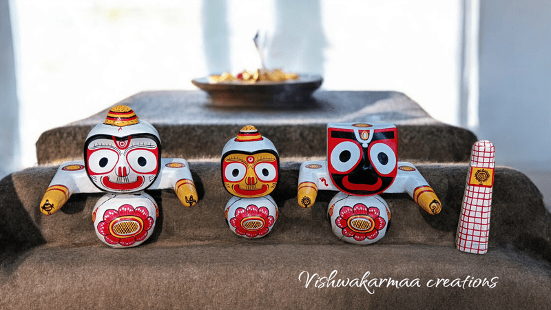 Handcrafted Wooden Jagannath and Siblings Murti for Home Pujas