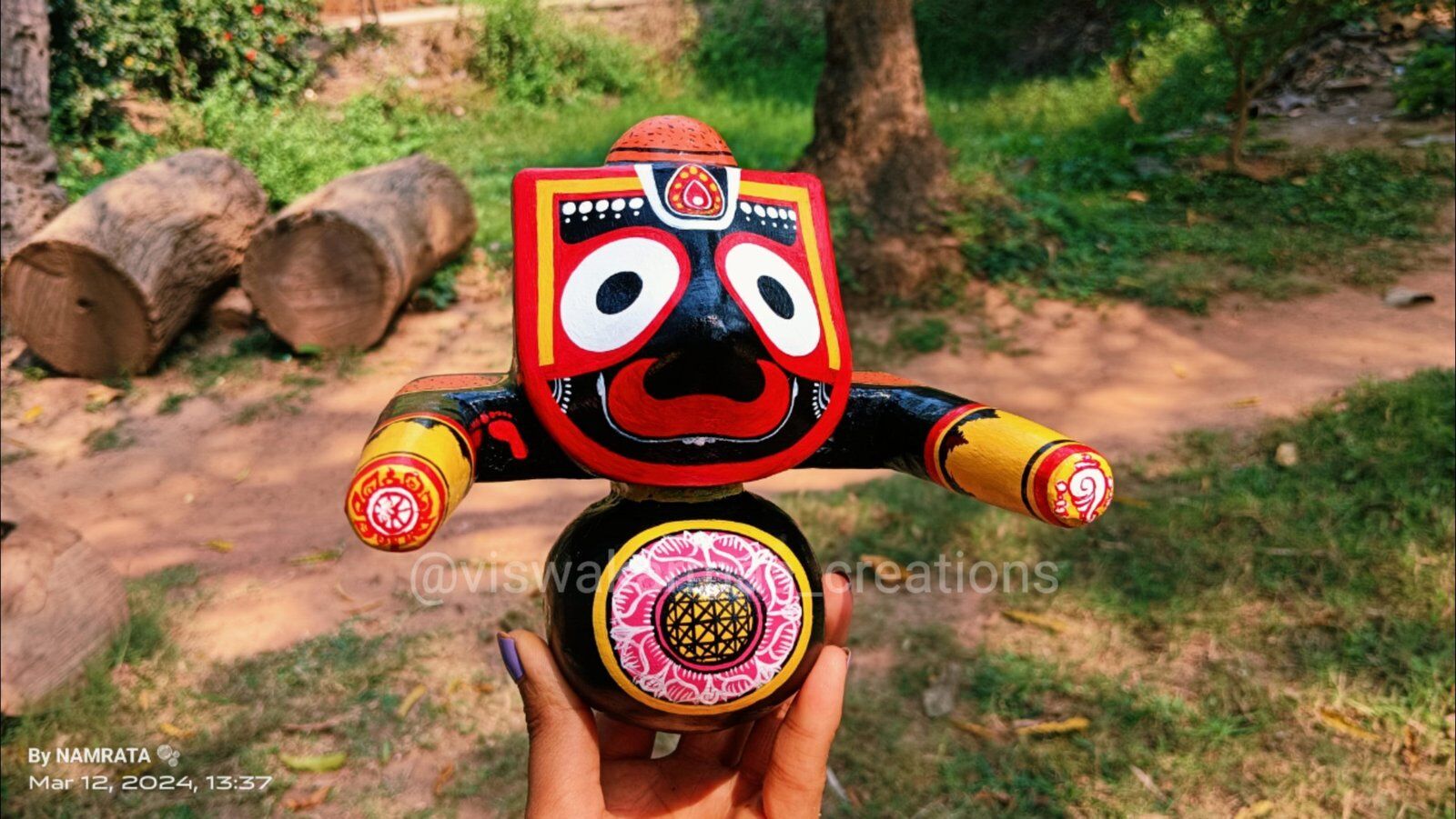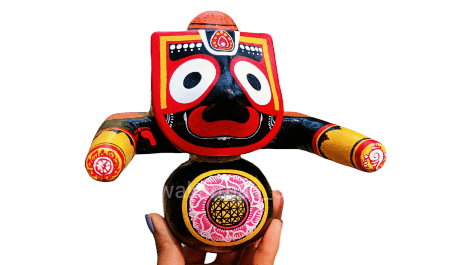 Symbolism of Divine Love: The Govinda Rupam Patitapabana is depicted with the same divine charm as Lord Krishna. The deity is adorned in black, symbolizing Krishna’s dark complexion, with subtle touches of white and yellow to reflect the unity of all forms in the divine. The intricate artwork on the face and body emphasizes the simplicity and purity of devotion.